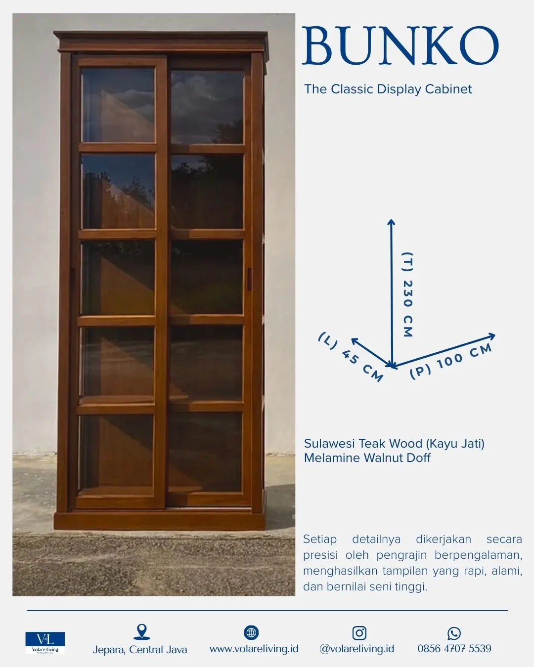 BUNKO DISPLAY CABINET (TEAK WOOD) – A Perfect Fusion of Tradition and Modern Elegance. The BUNKO DISPLAY CABINET (TEAK WOOD) embodies the seamless blend of timeless traditional artistry and contemporary design. Each piece is meticulously crafted by Jepara’s finest artisans, delivering unmatched elegance and exceptional quality.
