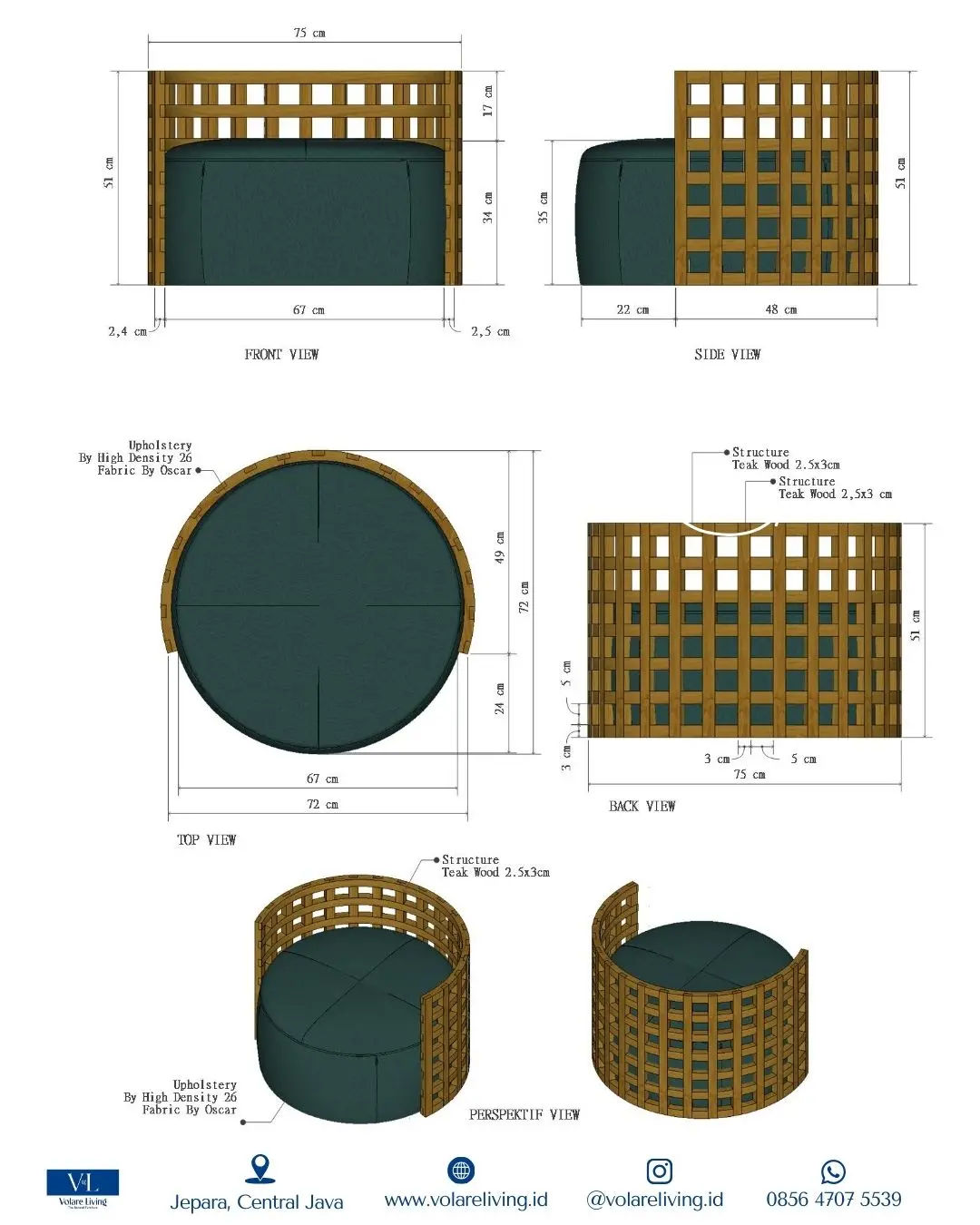 - Dimention : Diameter 75 cm x 51 cm (35 cm Hight Set) or Custom Size Available