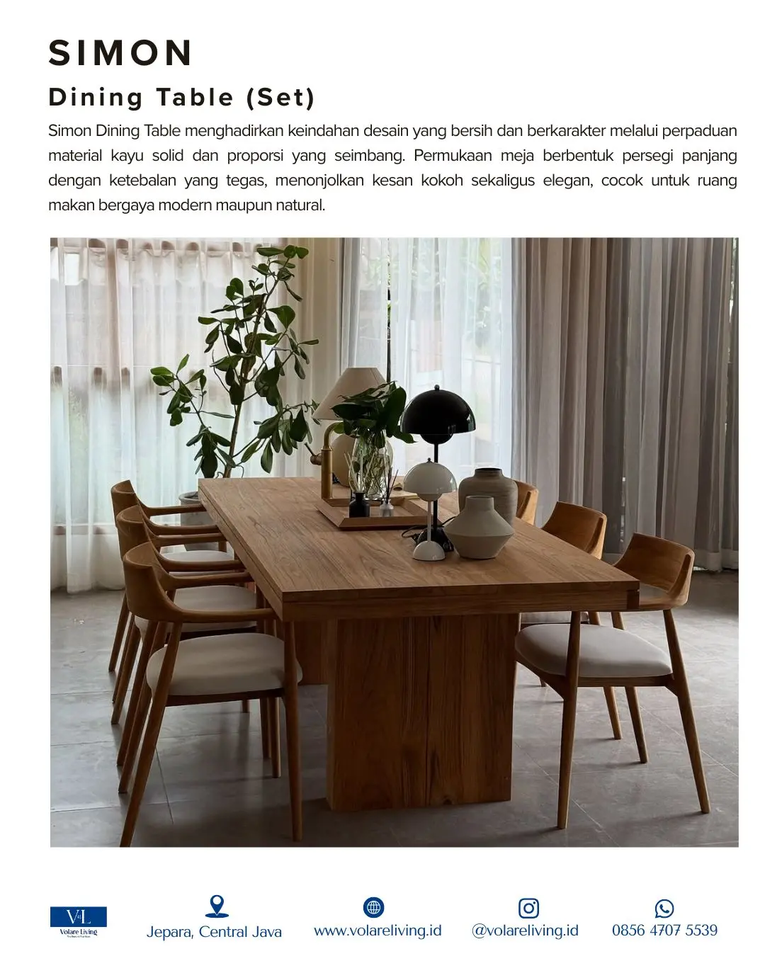 SIMON DINING TABLE ( TEAK WOOD ) – A Perfect Fusion of Tradition and Modern Elegance. The SIMON DINING TABLE ( TEAK WOOD ) embodies the seamless blend of timeless traditional artistry and contemporary design. Each piece is meticulously crafted by Jepara’s finest artisans, delivering unmatched elegance and exceptional quality.